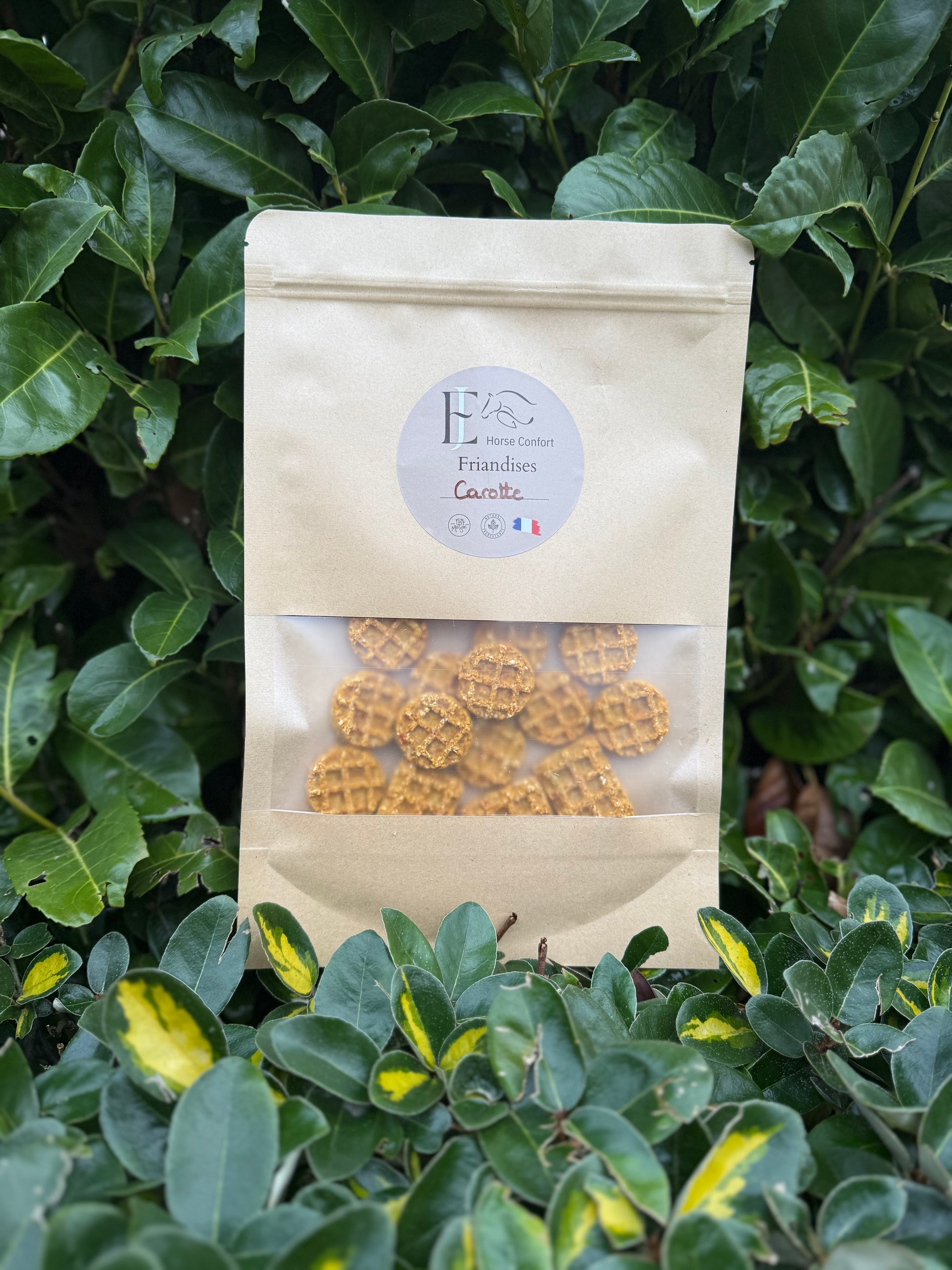 À base de carotte , naturellement riche en bêta-carotène et très appréciée des chevaux, ces friandises offrent une saveur douce et authentique. Leur fabrication artisanale garantit une qualité nutritionnelle et gustative optimale , tout en respectant la sensibilité digestive.