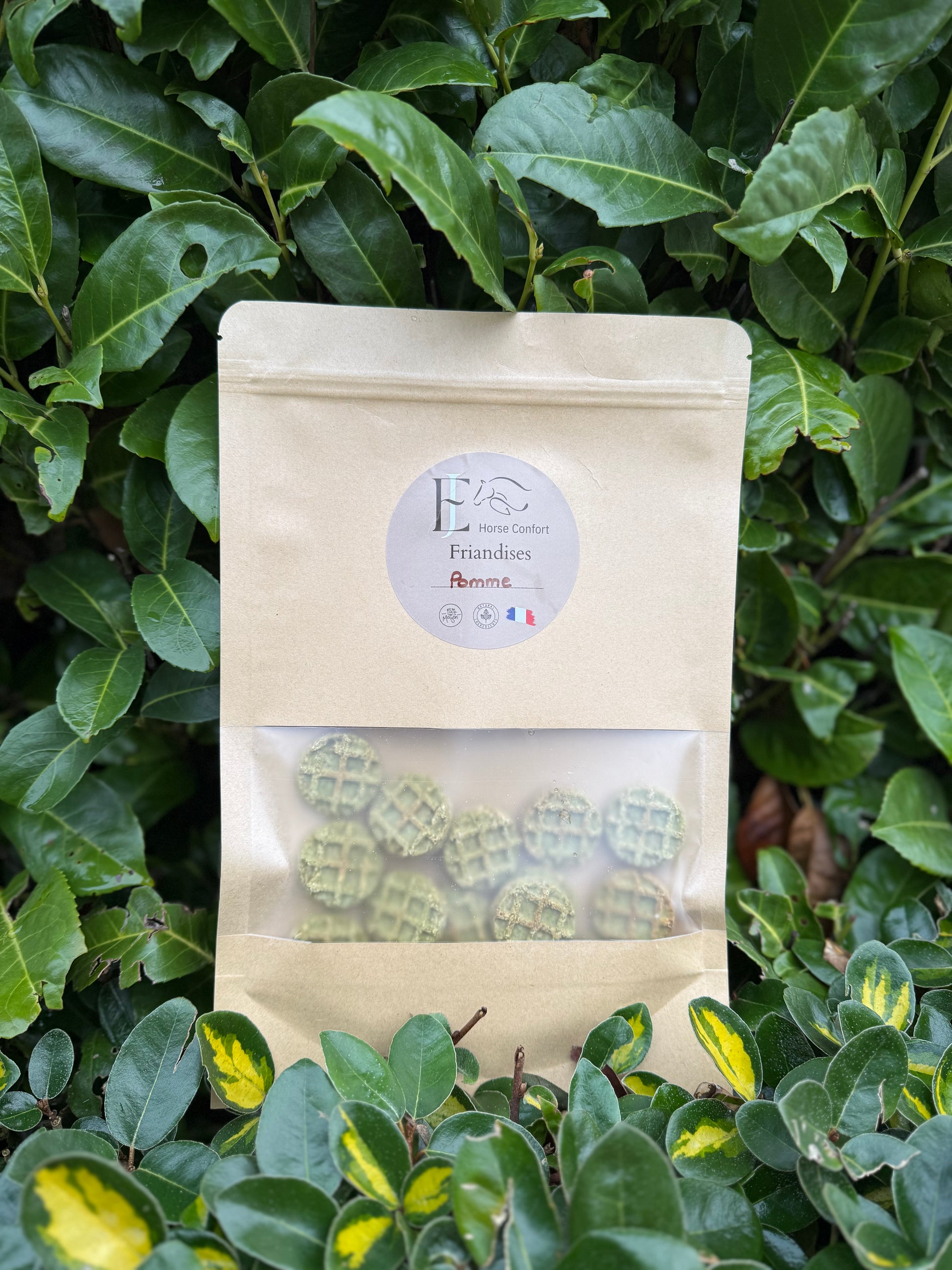 À base de pomme, reconnue pour son goût naturellement sucré et apprécié des chevaux, elles apportent une touche de gourmandise tout en restant légères et naturelles. Leur fabrication artisanale garantit une qualité nutritionnelle et gustative optimale, même pour les chevaux les plus sensibles.
